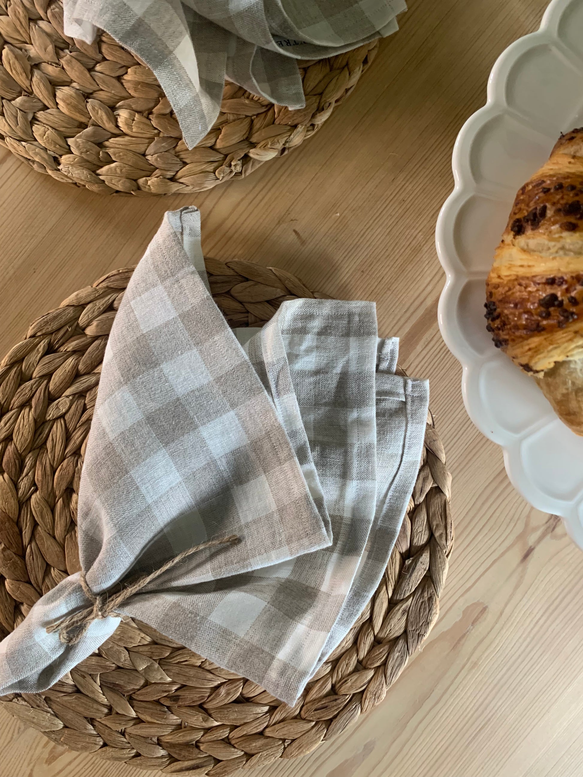 Sold as a pair, our Arthur napkins are meticulously crafted from 100% linen, making them the perfect accessory to any table. Not only are they soft and practical but also aesthetic. The checkered design, coupled with its soft neutral hue, exudes a charming appeal that can effortlessly enhance the overall aesthetic of your dining experience.