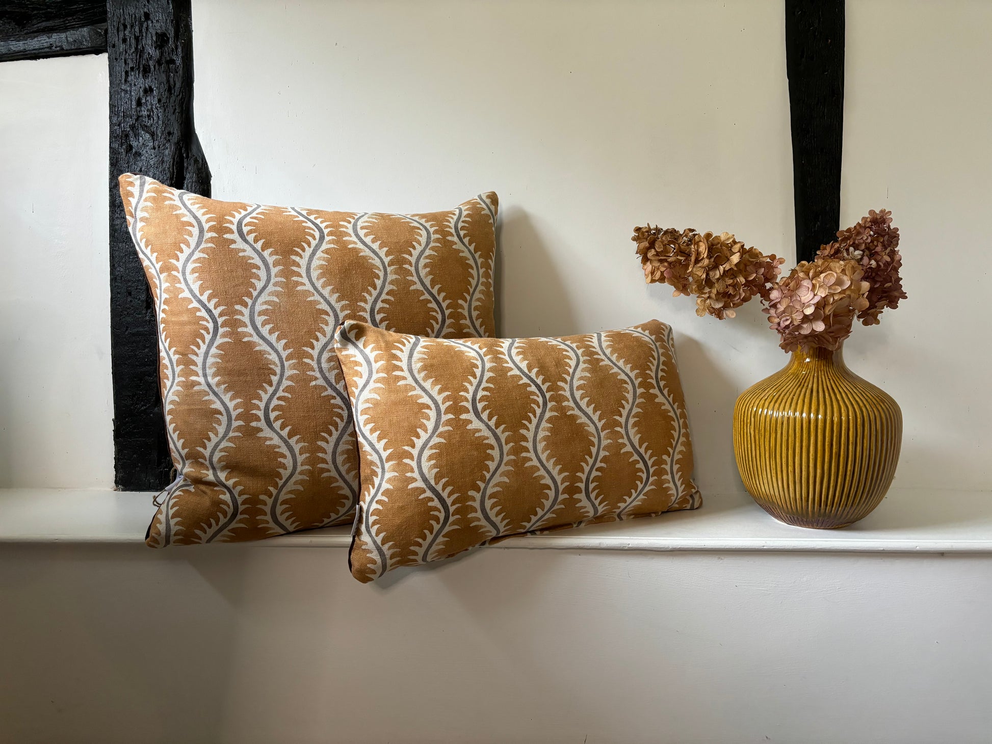 Brimsley was carefully selected as one of the inaugural fabrics for our spring collection due to its elegant, delicate flow and subtle contemporary design elements. Complemented by a luxurious velvet backing, it effortlessly harmonises with other cushions while possessing the ability to stand on its own.